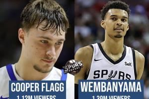 据数据统计,本场弗拉格首秀观众人数最高达到112万,但略低于2023年文班亚马夏联首秀的139万。