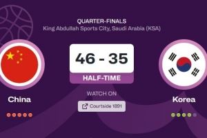 体育资讯8月14日讯 男篮亚洲杯今天继续进行,中国男篮和韩国男篮在1/4决赛对阵,半场结束时,中国男篮46比35领先。
